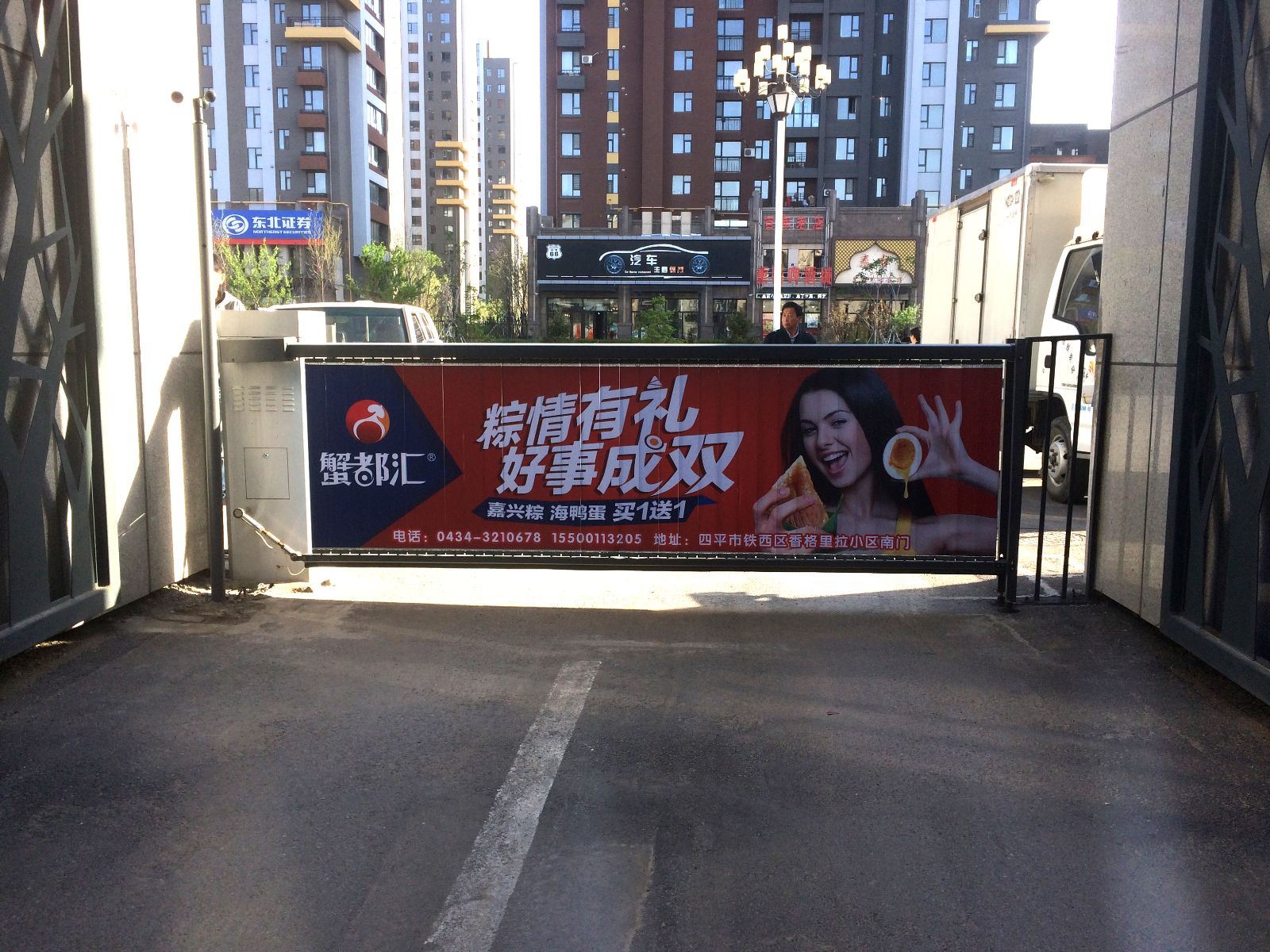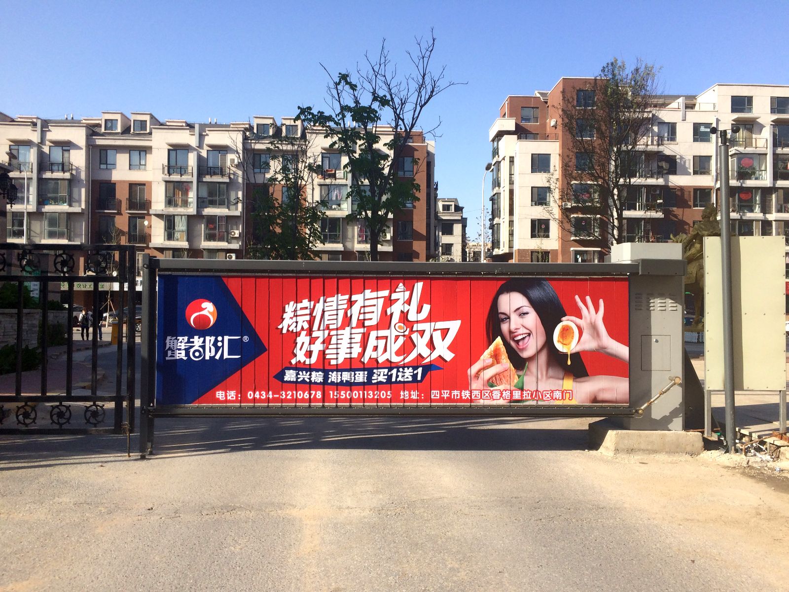 恭喜四平蟹都(dōu)彙小區道(dào)閘廣告上畫成(chéng)功!