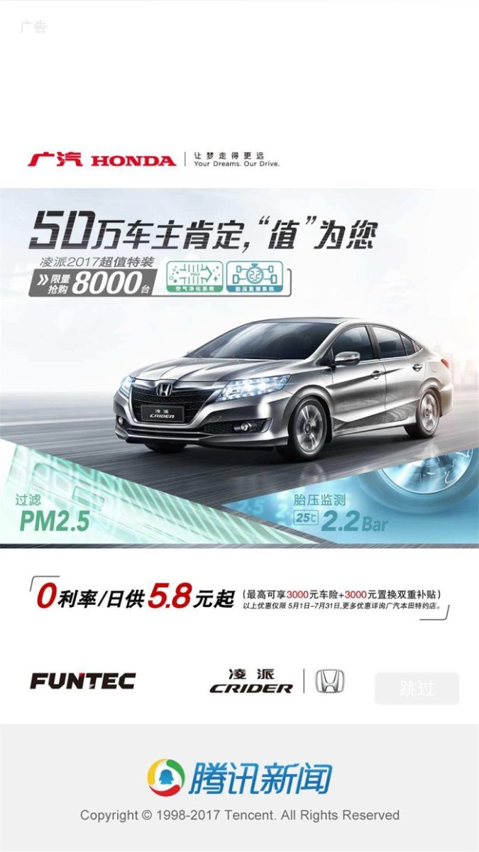 恭喜四平廣汽本田【騰訊新聞—開(kāi)機閃屏】廣告上刊成(chéng)功!