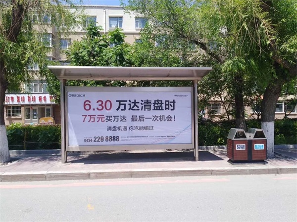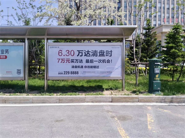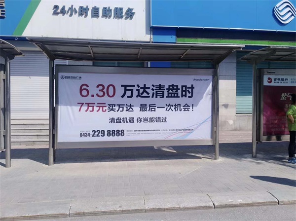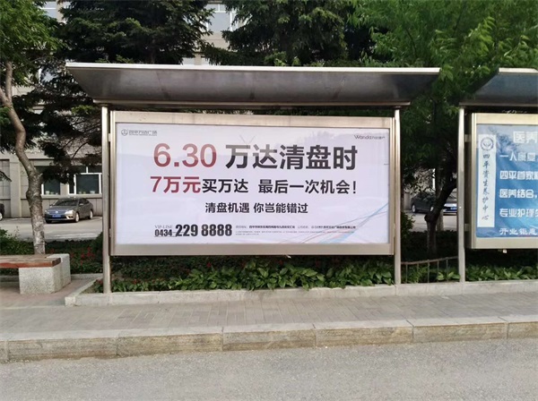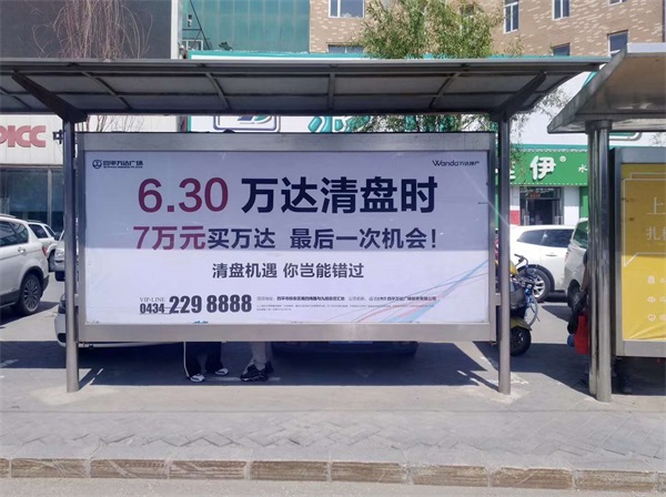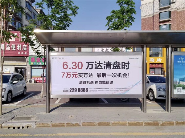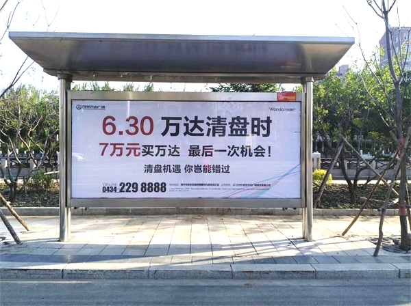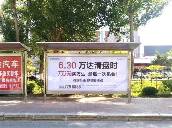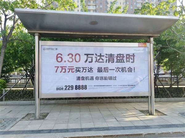 恭喜萬達候車亭廣告上刊成(chéng)功!16.30萬達清盤時(shí),你豈能(néng)錯過(guò)電話:0434-2298888。