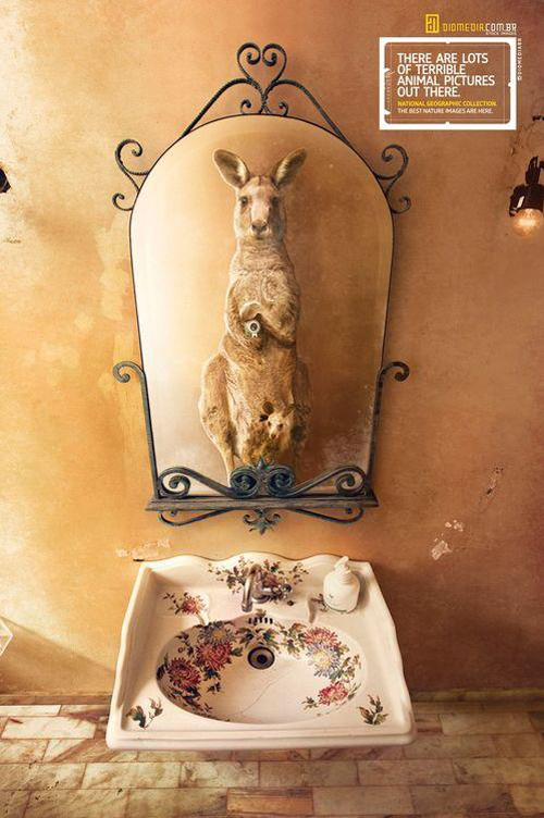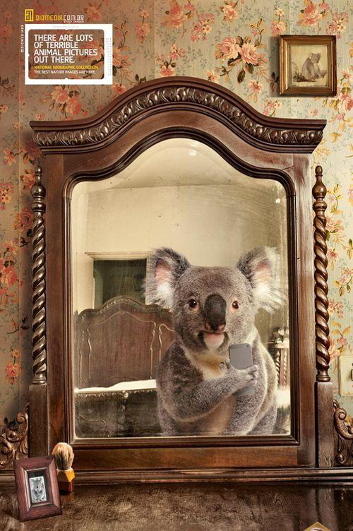 美國(guó)國(guó)家地理雜志社和巴西Diomedia Stock Photo合作,拿出了一套驚人的廣告,在廣告當中,可愛的野外動物在浴室鏡子前瘋狂自拍。但除了圖片之外,這(zhè)次國(guó)家地理的廣告其實和動物無關。